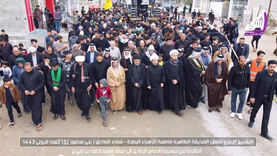 أعلنت ممثلية سماحة المرجع الديني الشيخ محمد اليعقوبي (دام ظله) في قضاء الصادق، اليوم الثلاثاء، عن إقامة تشييع رمزي مهيب، لنعش السيدة الزهراء (ع)، وذلك استمراراً بإحياء ذكرى شهادة السيدة الزهراء (ع) في عدد من أقضية محافظة البصرة.