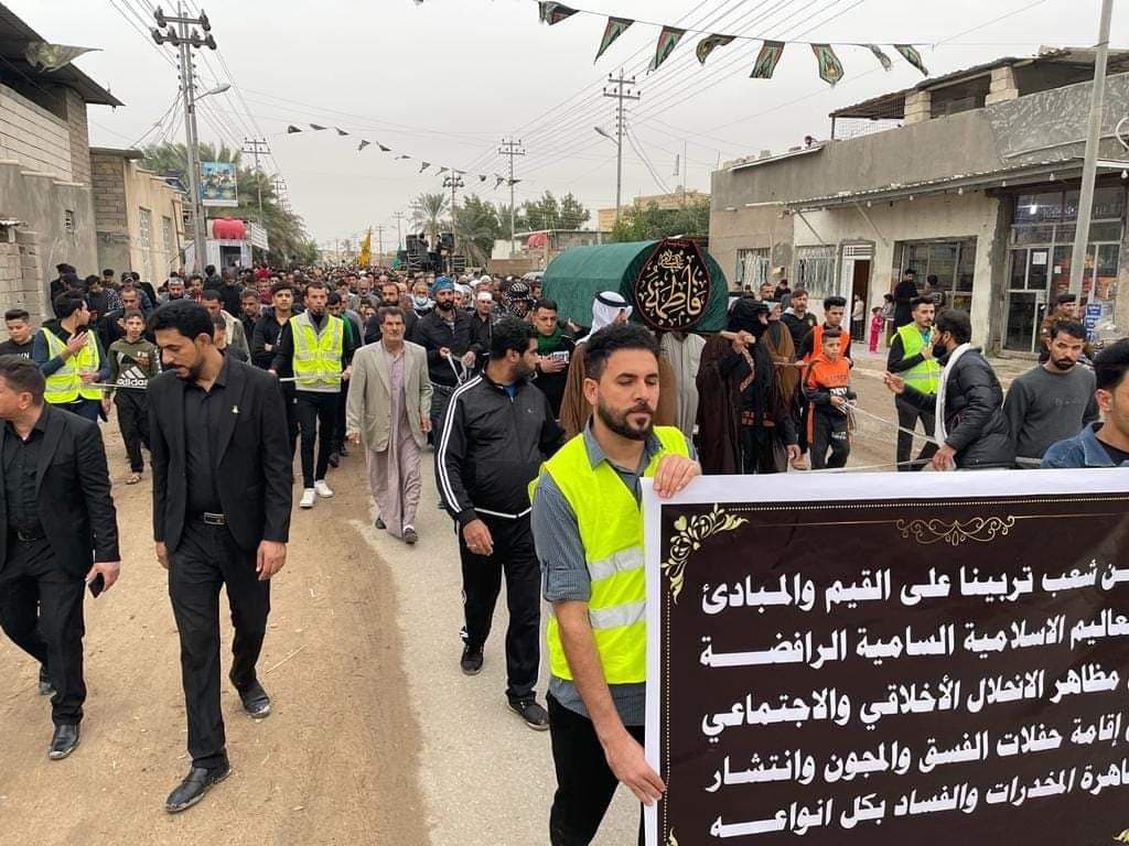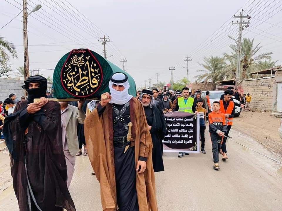 بالصور.. ممثلية المرجع اليعقوبي في الصادق تقيم تشييعاً رمزياً لنعش السيدة الزهراء (ع)