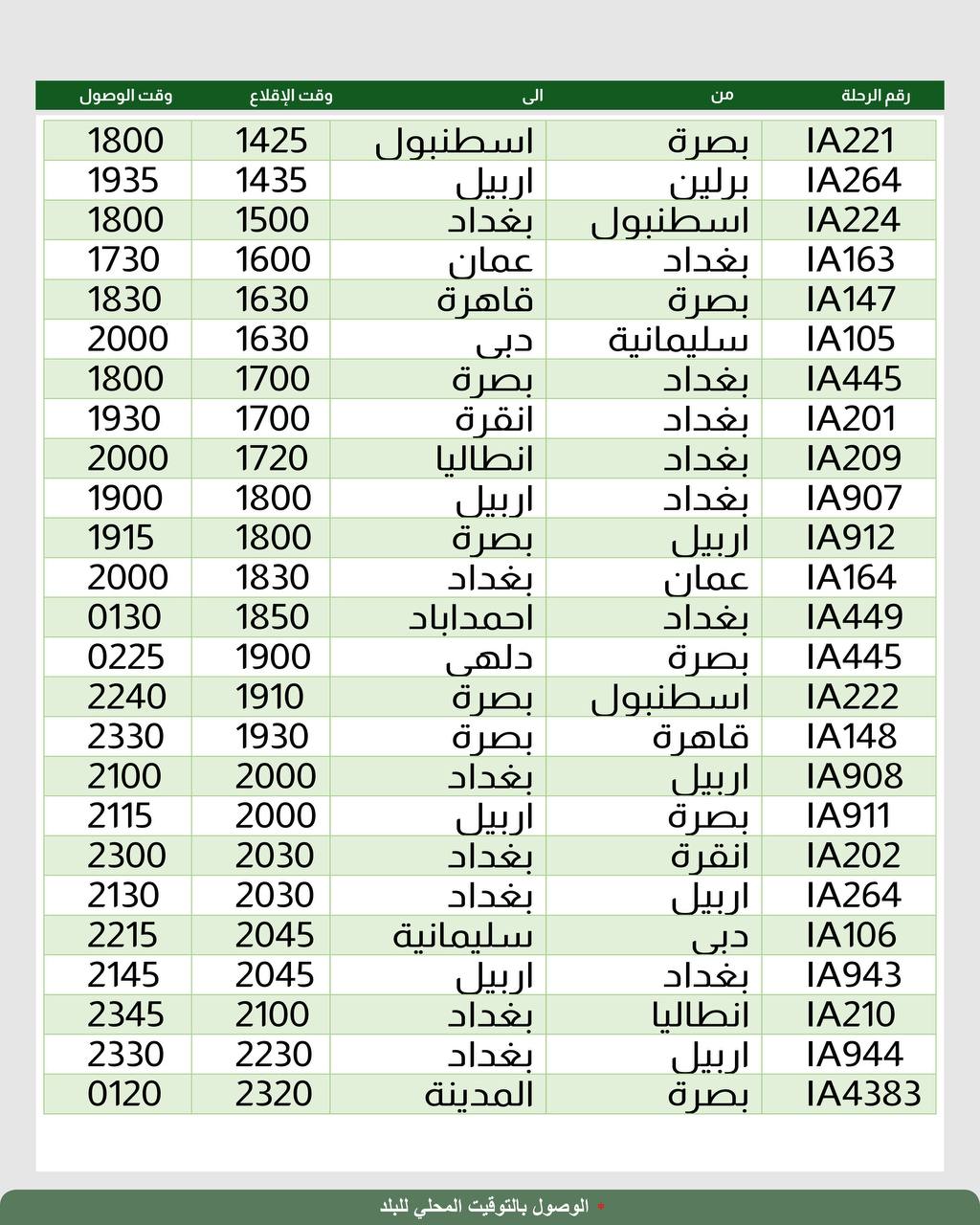 أعلنت الخطوط الجوية العراقية، اليوم الخميس، عن جدول رحلاتها ليوم غد الجمعة.