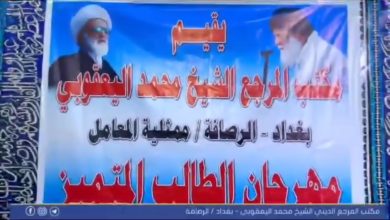 أعلنت ممثلية سماحة المرجع الديني الشيخ محمد اليعقوبي في منطقة المعامل، اليوم الخميس، عن أقامت مهرجان الطالب المتميز. وذكرت…